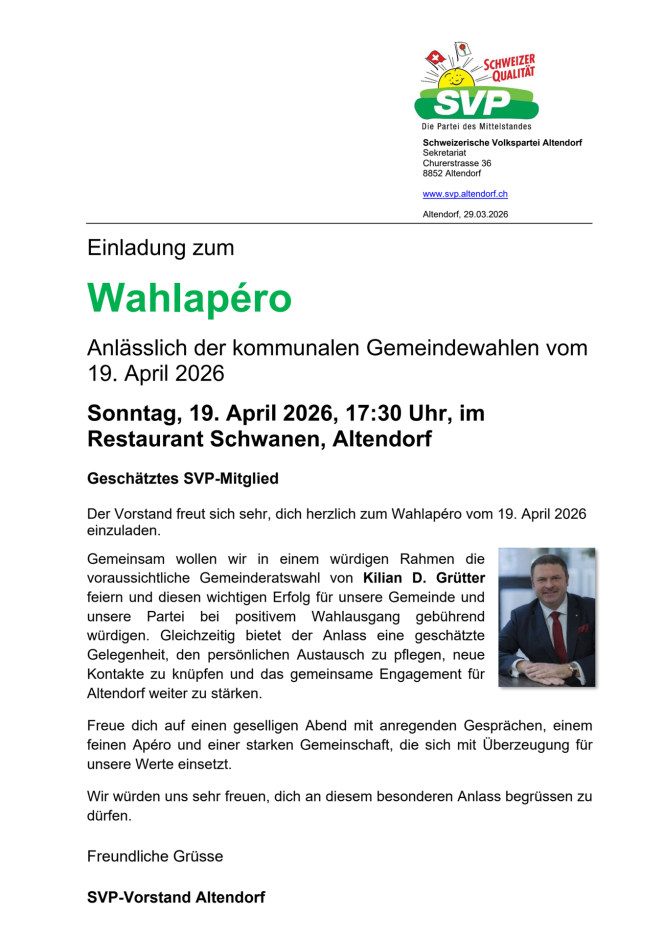 SVP Altendorf hat Nominiert